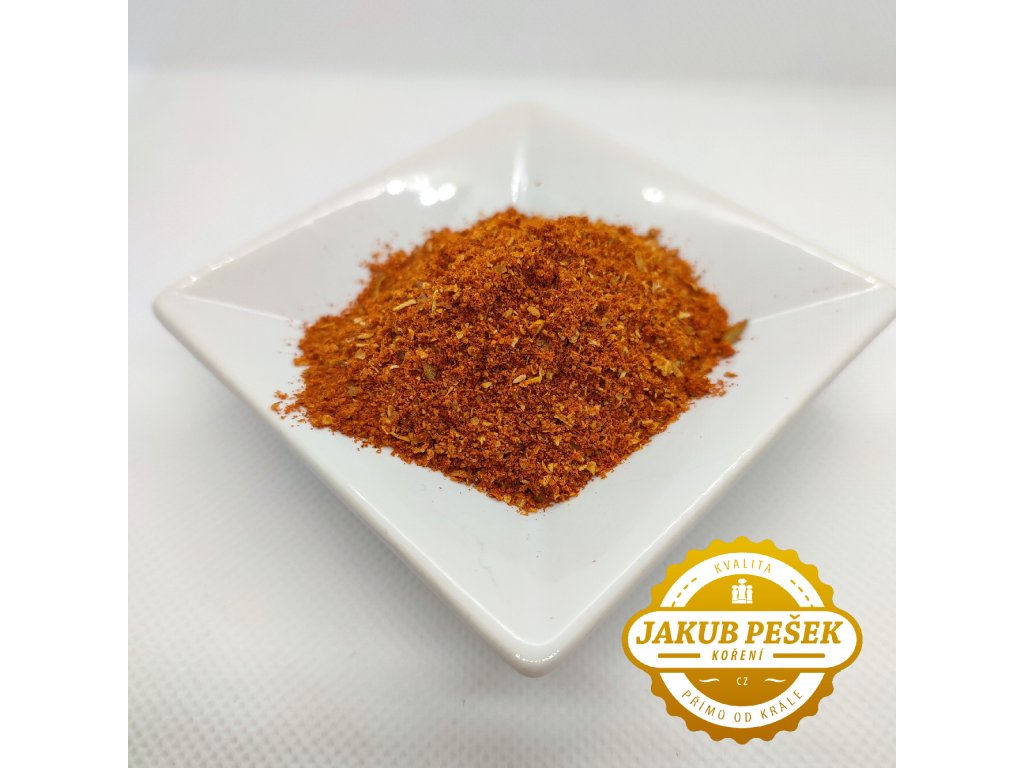 Složení: Paprika, Kmín, Cibule, Rozmarýn, Česnek, Koriandr, Kurkuma, Hřebiček, Anýz, Chilli, Kyselina citronová, Kardamon, Pepř černý, Pepř bílý, Fenykl, Cukr, Oregáno